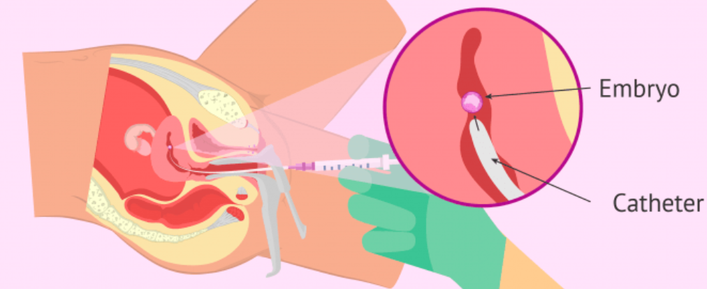 - ემბრიოტრანსფერის შემთხვევაში შერჩეული ემბრიონები თავსდება წვრილ, რბილ კატეთერში და ულტრაბგერითი კონტროლის ქვეშ ხორციელდება საშვილოსნოს ყელის გავლით საშვილოსნოს ღრუში გადატანა.